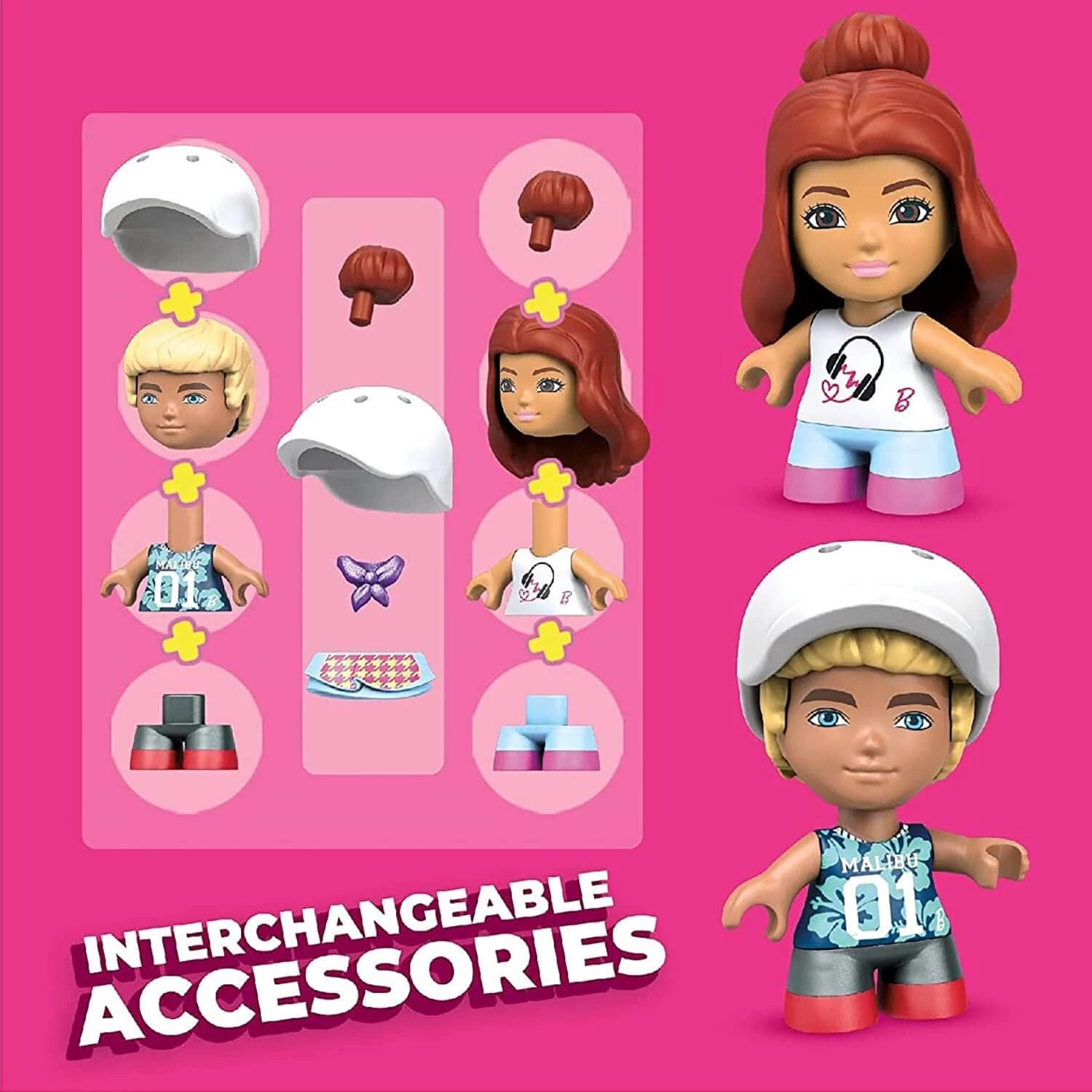 Play as you build the scene to set up your own adventures. Each set comes with 2 Barbie micro dolls, 10+ accessories, a heart shaped base to build on.
