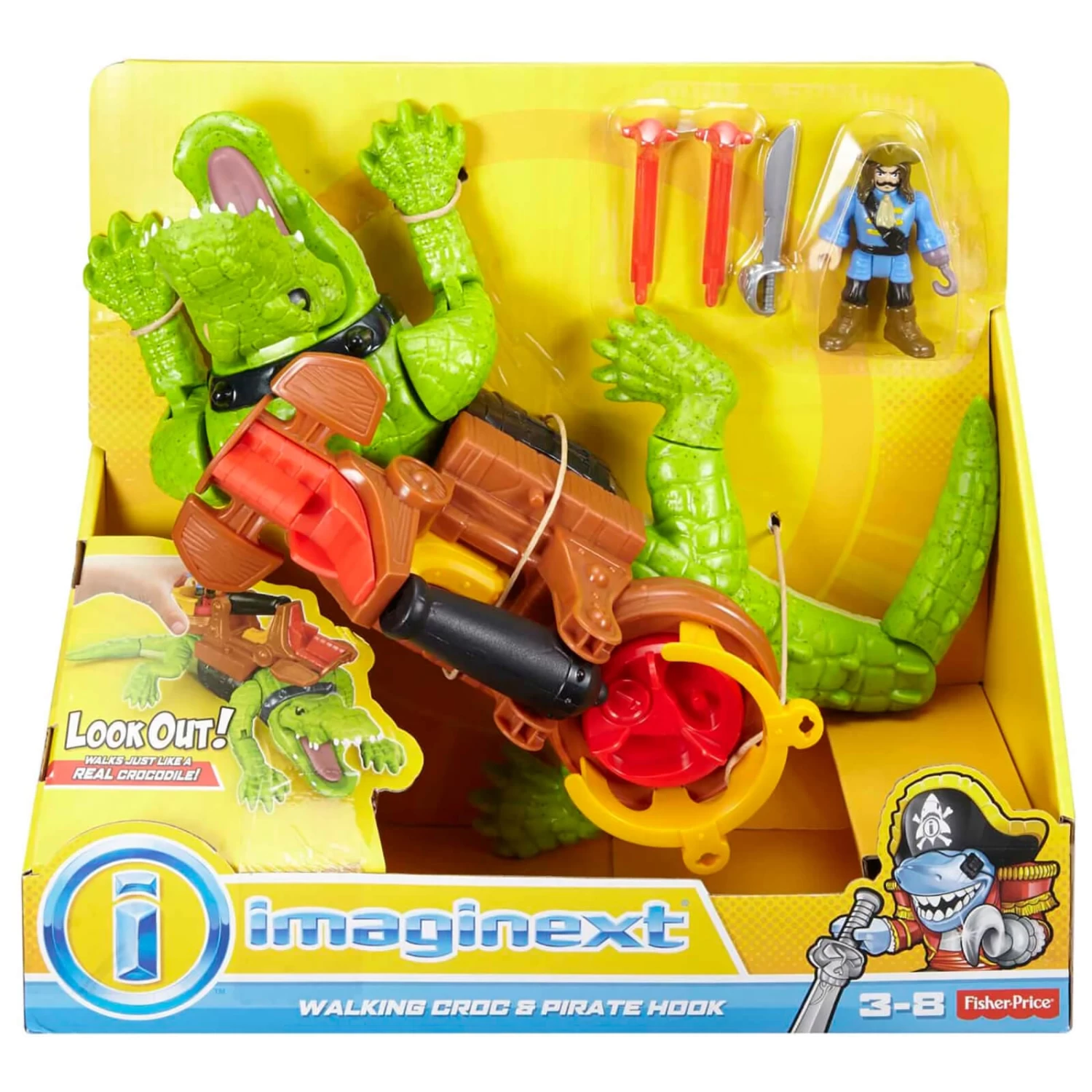 Create action-packed pretend adventures with this Imaginext Walking Croc & Pirate Hook figure set from Fisher-Price.