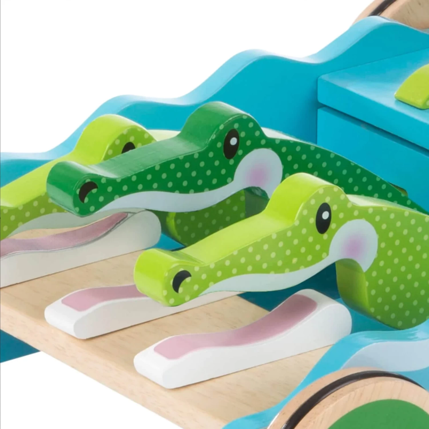 See you later, alligators! Get playtime rolling with three friendly alligators who take turns chomping with every step your toddler takes.