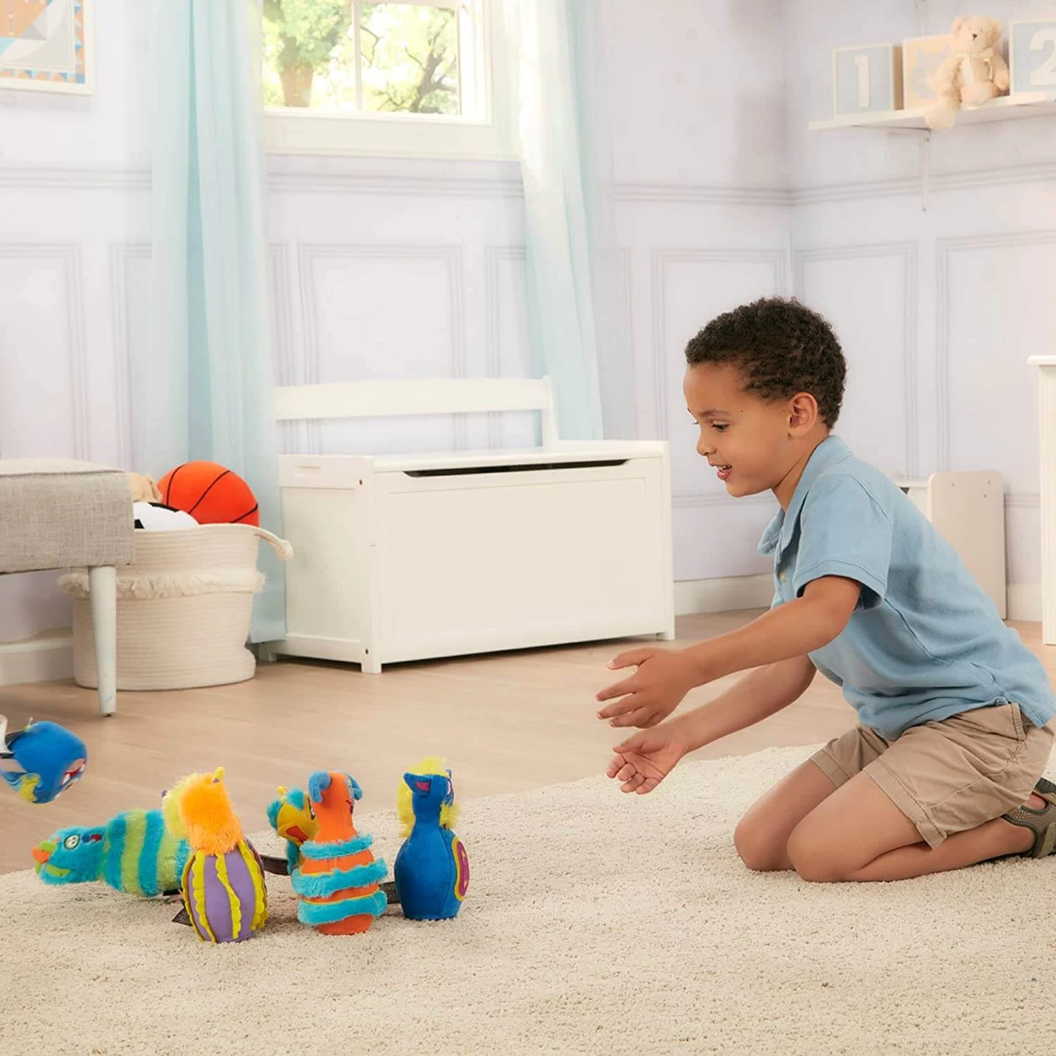 It’s scary how much fun you’ll have with these fuzzy monster pals! The Melissa & Doug beastly bowling set adds colour, texture, and a whole lot of eyes to a familiar game.