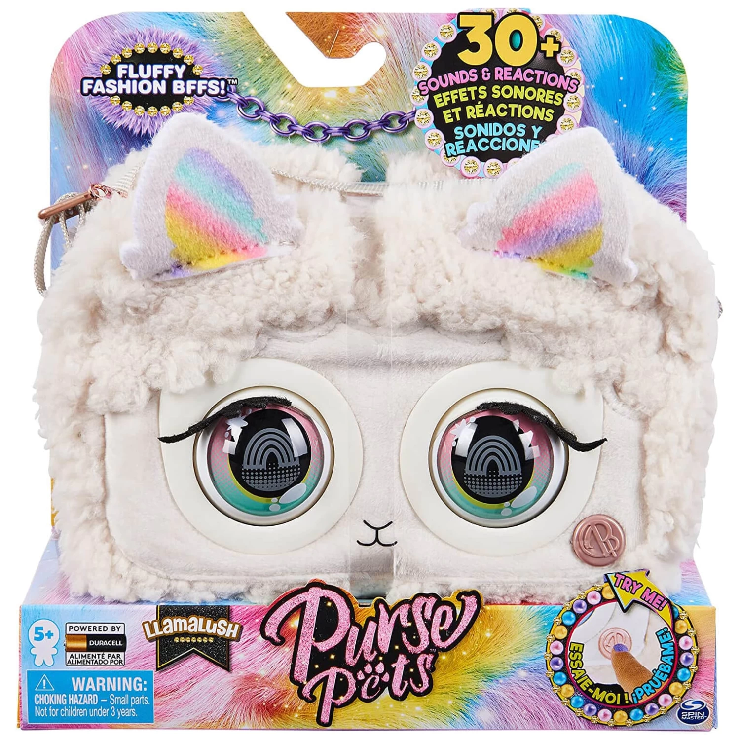 This fabulous interactive Purse Pet is packed with purse-onality. With ultra-soft assorted fabrics, pop art-inspired eyes and an adjustable strap.